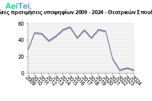 Προτιμήσεις Υποψηφίων 2025Τα παρακάτω στατιστικά αφορούν στη σειρά προτίμησης γι' αυτή τη σχολή (Θεατρικών Σπουδών, Ναύπλιο) που δήλωσαν στο Μηχανογραφικό τους Δελτίο οι υποψήφιοι των Γενικών Λυκείων (ημερήσια και εσπερινά ΓΕΛ) 90% της γενικής σειράς το 2025.Αν θέλετε να δείτε τα αντίστοιχα στατιστικά για άλλες κατηγορίες υποψηφίων ή/και για προηγούμενα έτη, χρησιμοποιήστε τη σελίδα: «Στατιστικά Προτιμήσεων Υποψηφίων: Θεατρικών Σπουδών, Ναύπλιο». | Επιλογή | Υποψήφιοι |