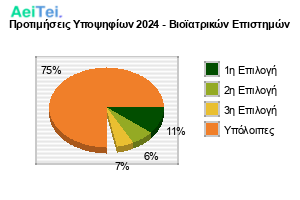 Προτιμήσεις Υποψηφίων 2025Τα παρακάτω στατιστικά αφορούν στη σειρά προτίμησης γι' αυτή τη σχολή (Βιοϊατρικών Επιστημών, Αιγάλεω) που δήλωσαν στο Μηχανογραφικό τους Δελτίο οι υποψήφιοι των Γενικών Λυκείων (ημερήσια και εσπερινά ΓΕΛ) 90% της γενικής σειράς το 2025.Αν θέλετε να δείτε τα αντίστοιχα στατιστικά για άλλες κατηγορίες υποψηφίων ή/και για προηγούμενα έτη, χρησιμοποιήστε τη σελίδα: «Στατιστικά Προτιμήσεων Υποψηφίων: Βιοϊατρικών Επιστημών, Αιγάλεω». | Επιλογή | Υποψήφιοι |